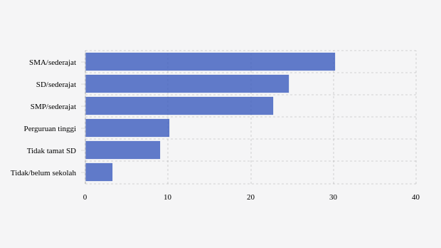 | 中学校卒業 | IDR 2,230,000 (21,707 円) | IDR 28,990,000 (282,192 円) | 22.74 % |